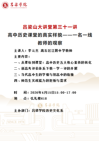 吕梁山大讲堂第三十一讲通知:高中历史课堂的真实样貌——一名一线教师的观察